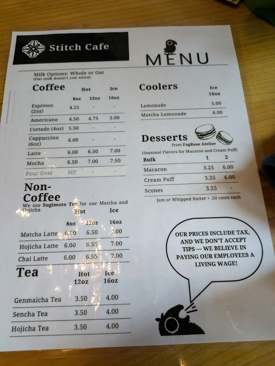 Stitch Cafe Menu